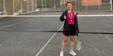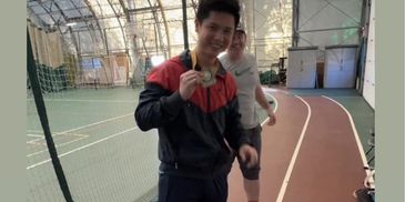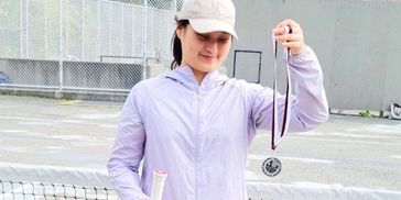 With a gleam in her eye, Sherry proudly gazes at her shiny medal, a symbol of her hard-fought victory at the Saturday Tennis Challenger, where she triumphed by 4 points over Karrinah, Jacky, and Haoran. This medal isn’t just an award; it’s a reminder of the fun, the fierce competition, and the unforgettable moments on the court!