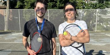 Amanda (right) claimed victory in the Beginners Challengers, defeating Jeff (left) with a 6-3 score. Amanda's powerful serves and consistent play kept her in control throughout the match, despite Jeff's strong efforts. In the photo, you can see Amanda's big smile, celebrating her well-earned win. Congratulations, Amanda!
