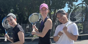 Fresh off their recent suspension for "umpire abuse“, Alicja Heisig-Chiarello (right) & Amy D’Amboise (left) return to the tennis courts and compete in the Jon Ash Oct 3 challenger. Final results: Alicja (winner with 4 wins), Jaeeun (3 wins), Amy (3 wins) & Cecilia (2 wins).