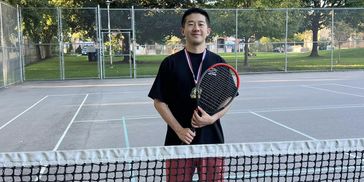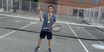 Zhixiang Wang collects both a medal and a nod to "level up” to the next division, after taking 2 games off Coach Hesh in the rookie challenger on Nov 10 at Crescent. He covers a lot of court with quick feet & isn’t afraid to attack the net. Looking forward to seeing him in 1.5- 2.0 division.