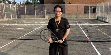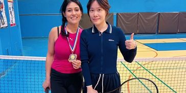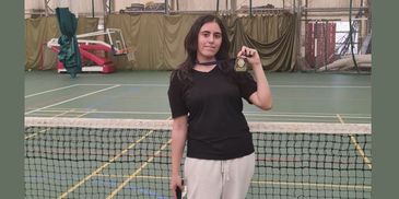 Marina brought her A-game and dominated the court, defeating Omar 10-4 to snag the Challenger medal! Her powerful play left no doubt about who was in charge. In the photo, Marina gives a big thumbs up, celebrating her awesome win with a well-earned smile. Way to go, Marina!