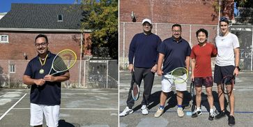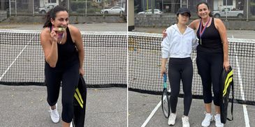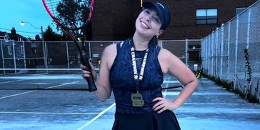 The 1-2 combo of Sarah Quayyum (left) and Diana Koval (right) faced off against each other on the grounds of John Fisher. Diana was triumphant with 13 total games won to Sarah's 8.
