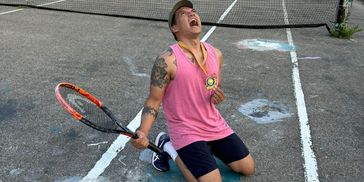 Gab’s victory celebration says it all! After a thrilling 12-3 win against Angela in Monday’s challenger, Gab dropped to his knees in pure joy, medal in hand, and racket raised high. It was a match full of energy, heart, and sheer determination—Gab didn't just win, he conquered the court with style!