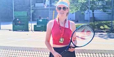 This is Challenger Champion, Nina Zahr, from the "Advanced-Beginner" (NTRP 2.0-2.5) event on Monday, May 13th. Nina won 4 games, while her competitors Liye, Livia & Angela each won 3. A tight race indeed.