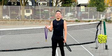Zhixiang,Tan & Heng Zhu know how to keep warm on cold November nite. Run & hit tennis balls is the answer! (of course in the comfort of the Lansdowne court) Heng Zhu (pictured) wins with 12 games. Zhixang 8 games & Tan nabs 6 games. Congrats to all! Heng walks away from the experience with a new slam dunk of a win.
